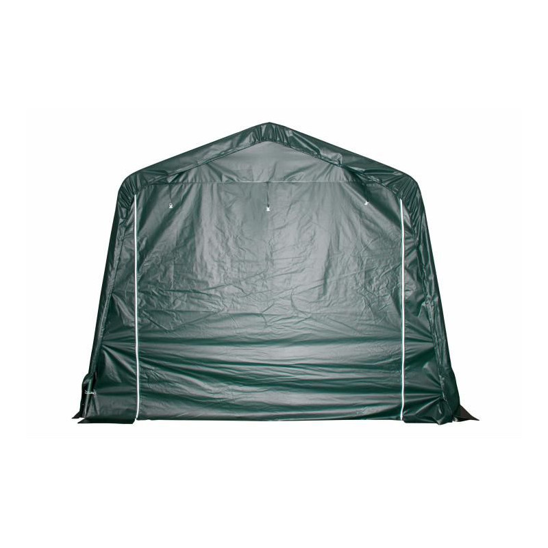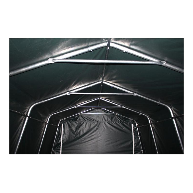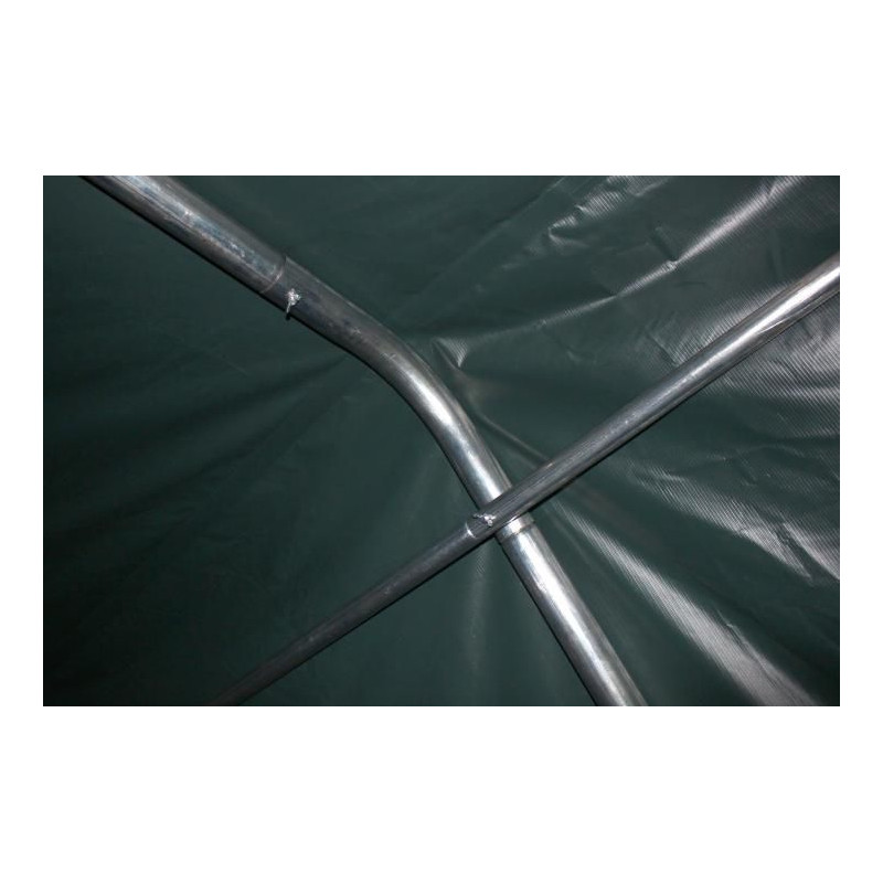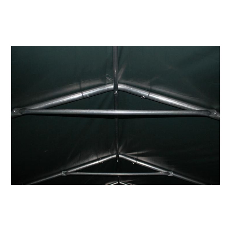 Masivní, pozinkované ocelové roury se jednotlivě spolu sešroubují, nejsou pouze zastrčené do sebe. Navíc je produkt vybaven ještě kotvami do betonu a kamenného podkladu, stejně tak jehlami pro zapíchnutí do země. Produkt je takto vybaven pro upevnění do jakéhokoliv podkladu. Kvalitní PVC-plachta (550/m²) je odolná UV záření (UV80) a nepromokavá. Masivní ocelová konstrukce zaručuje potřebnou stabilitu a vysokou životnost. Praktický přístřešek na pastvu je levnou alternativou k masivní stáji a skladovacím prostorům.