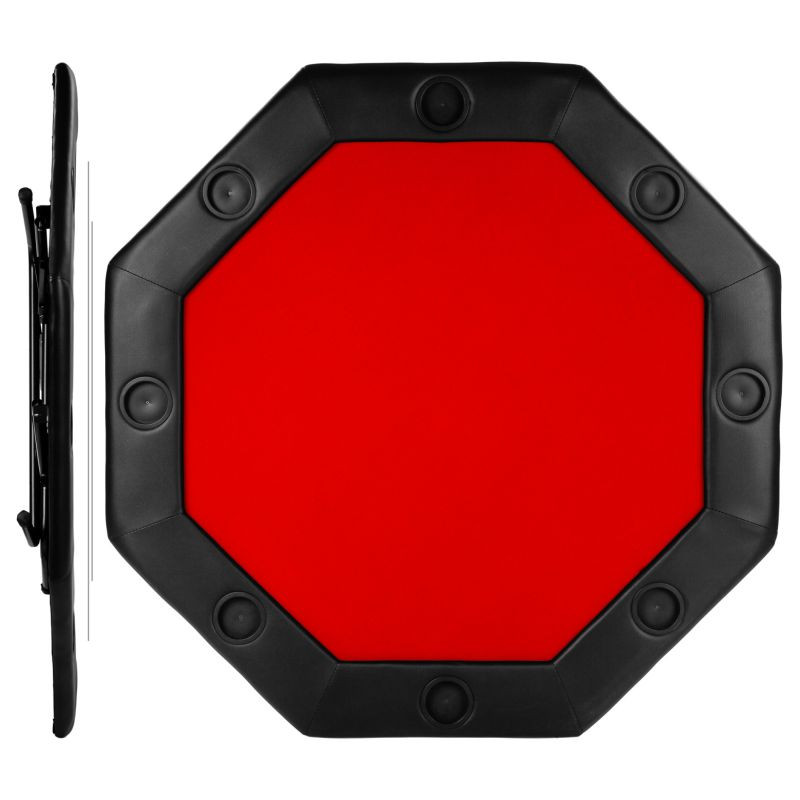 Potah z prémiové plsti a polstrované koženkové područky poskytují pokerovému stolu sofistikovaný vzhled. Pokerový stůl lze rychle a prostorově úsporně sklopit až na výšku 12 cm. Stůl je vhodný až pro 8 hráčů, přičemž na desce je umístěno 8 držáků na nápoj.