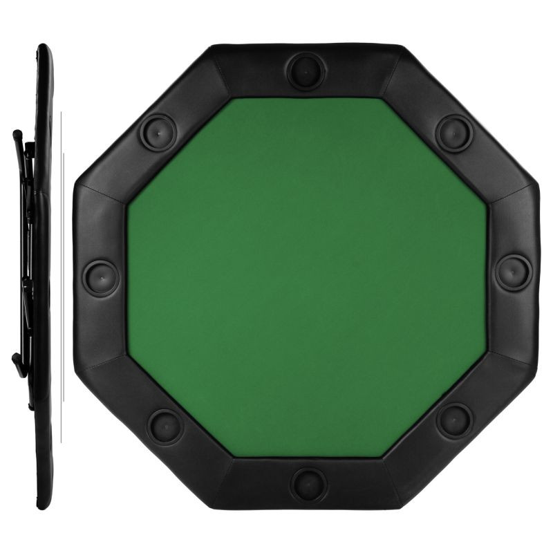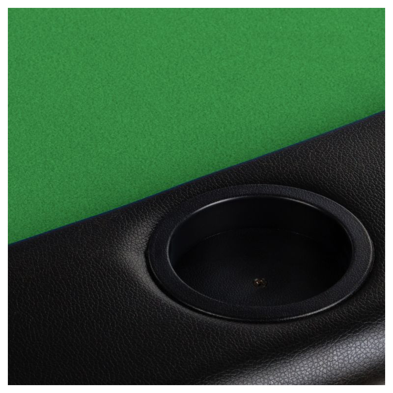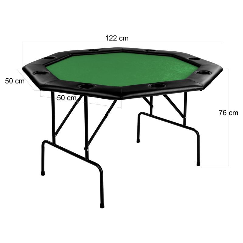 Potah z prémiové plsti a polstrované koženkové područky poskytují pokerovému stolu sofistikovaný vzhled. Pokerový stůl lze rychle a prostorově úsporně sklopit až na výšku 12 cm. Stůl je vhodný až pro 8 hráčů, přičemž na desce je umístěno 8 držáků na nápoj.