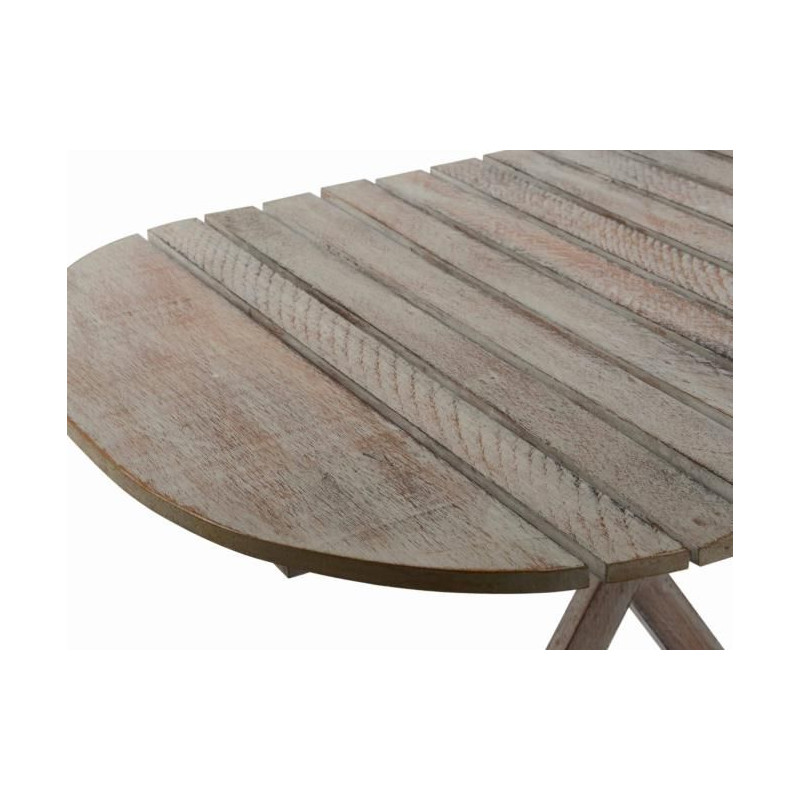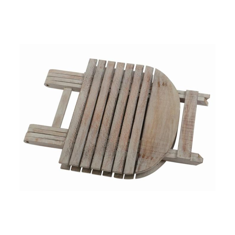 Tento lehký skládací stůl lze použít jako květinový stůl, dětský stůl nebo jednoduše jako odkládací stolek na nápoje, knihy nebo časopisy. Stolek je rychle připravený k použití v několika jednoduchých krocích, snadno se složí a uschová. Při zpracování dřeva byla použita bílá technika. V důsledku toho je žilkování obzvláště dobré a zdůrazňuje rustikální kouzlo. Stůl je vyráběn ručně a proto je každý kus originál.