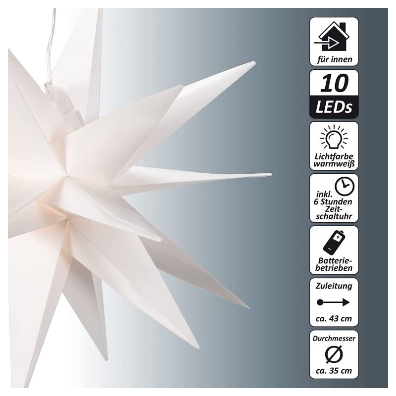 Vánoční hvězda s časovačem 60 cm, 10 LED, bílá