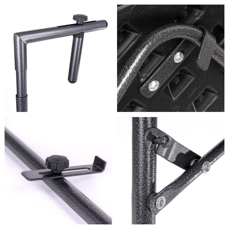 Díky našemu závěsnému stolku, který lze sklopit ušetříte místo. Díky svému materiálu je stolek odolný a snadno udržovatelný, může zůstat venku za každého počasí. Ať už jako konferenční stolek nebo jako stolek na rostliny vždy vypadá dobře. Výška stolu je nastavitelná a závisí na výšce zábradlí.