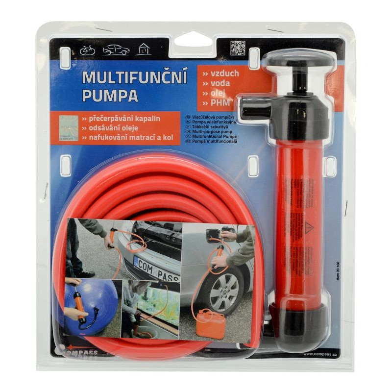 Multifunkční pumpa vhodná jak k nafukování, tak i k přečerpávání kapalin. Pumpička se dá využít při několika různých činnostech, díky přiloženým adaptérům. Je snadné nahustit matraci, bazén, jízdní kolo, či fotbalový míč,. nebo je možné pumpu použít pro přečerpání kapaliny - ať již k vyčerpání vody z akvária, tak i k přečerpání nafty, ale dokonce i k odsátí oleje z motoru.