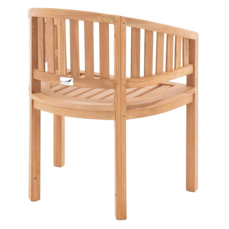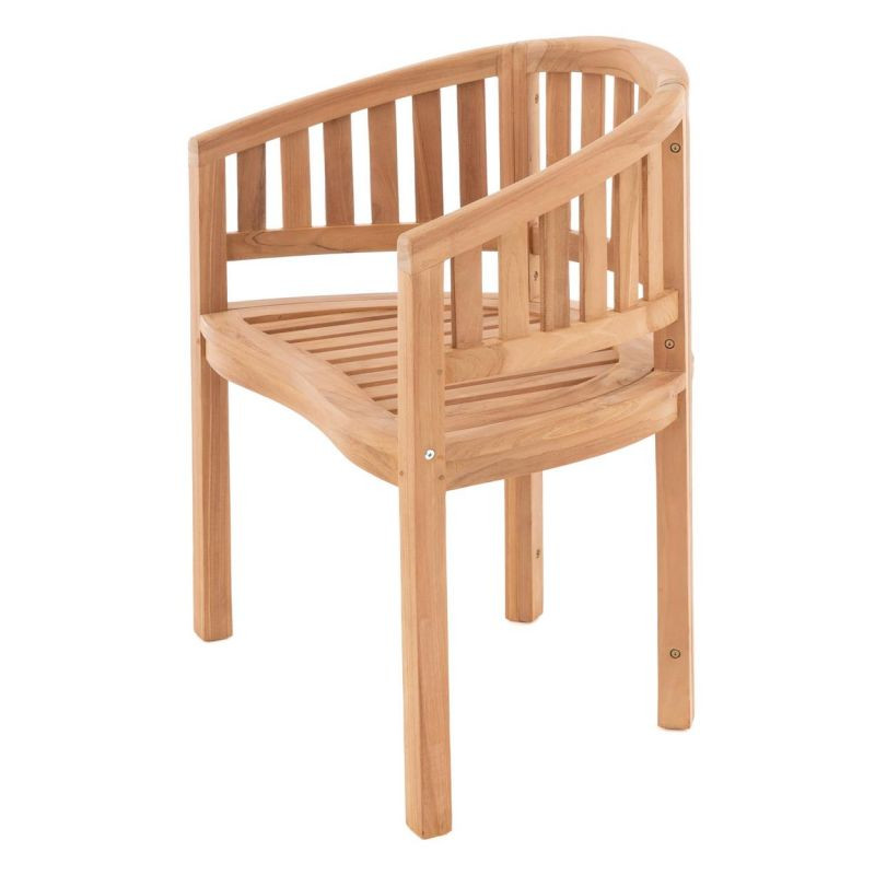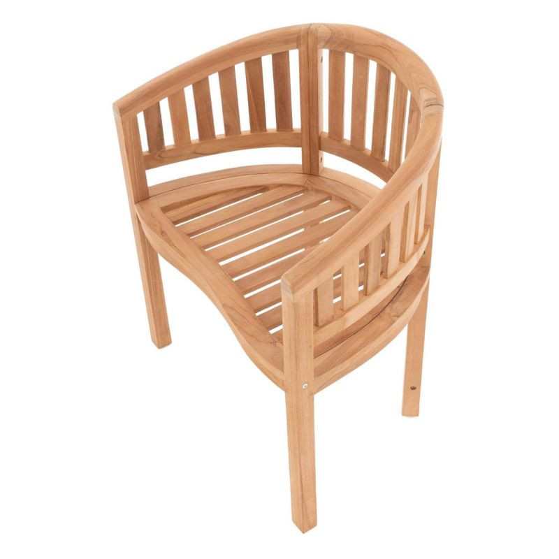 Stylové, rustikální křeslo Divero vyrobené z robustního, ošetřeného teaku vyniká mezi zahradními židlemi pro svůj neobvyklý oblý tvar a atraktivní design. e ideální pro relaxaci a rekreaci. Díky obloukovitému tvaru opěrky budete sedět mimořádně pohodlně a komfortně. Všestranná opěrka slouží jako loketní opěrka i opěradlo zad.Teak je nejen krásný na pohled, ale také se snadno udržuje, má vysokou životnost a je velmi odolný proti povětrnostním vlivům. Proto je ideální pro venkovní použití. Neošetřené teakové dřevo získá v průběhu času svou slavnou stříbrno-šedou patinu. Použitý teak pochází z udržitelného, ekologicky odpovědného obhospodařování lesů a je certifikován SVLK. Dřevěný nábytek je vyráběn ručně v malých výrobních společnostech. Každý kus je ručně vyrobený, jedná se o unikát, s ručně broušenými povrchy a jedinečným žilkováním dřeva. Z tohoto důvodu jsou možné občasné odchylky ve výrobku. Židle je dodávána v rozloženém stavu, ale lze ji snadno sestavit v několika jednoduchých krocích.