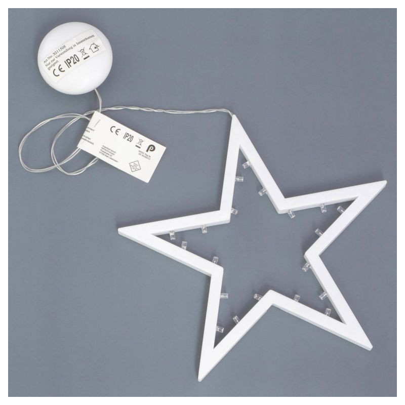 Bílé dekorační osvětleníve tvaru hvězdy je ideální jako vánoční dekorace ve vašem interiéru. Ať už k výzdobě oken, komody, předních dveří nebo na zdi místnosti, všude vytváří útulnou vánoční atmosféru. Vhodné pouze pro vnitřní použití. Testovaná třída ochrany IP20 zaručuje bezpečnost. Díky přihrádce na baterie jste nezávislí na zásuvkách, takže můžete Vánoční dekorace umístit kdekoli v místnosti.
