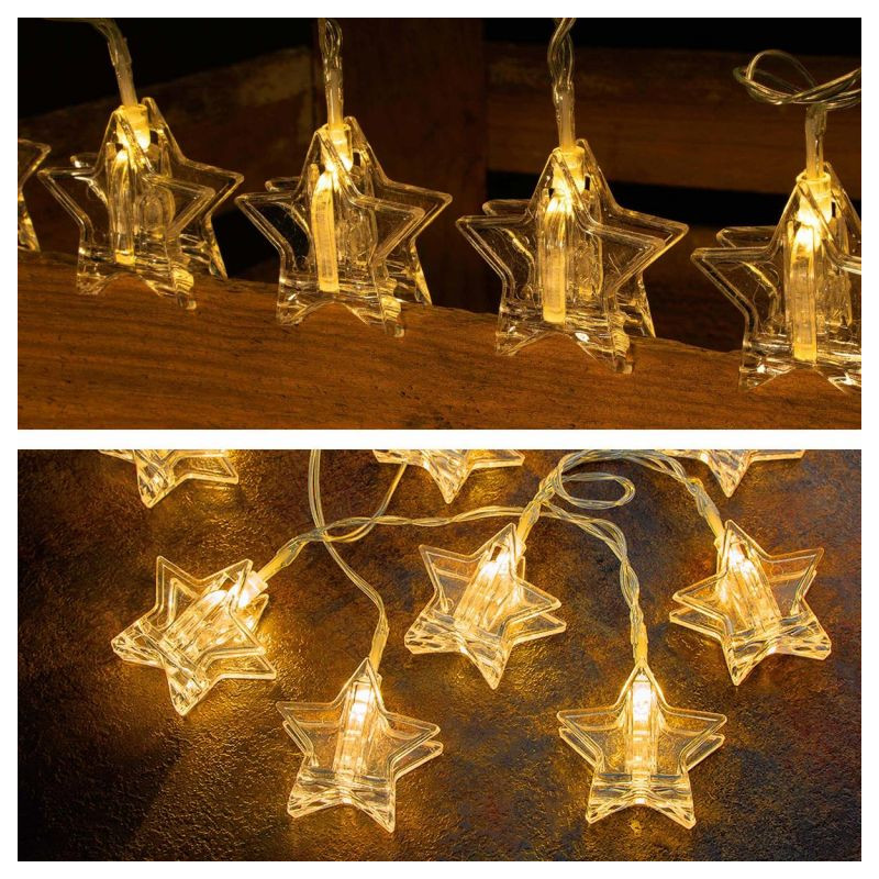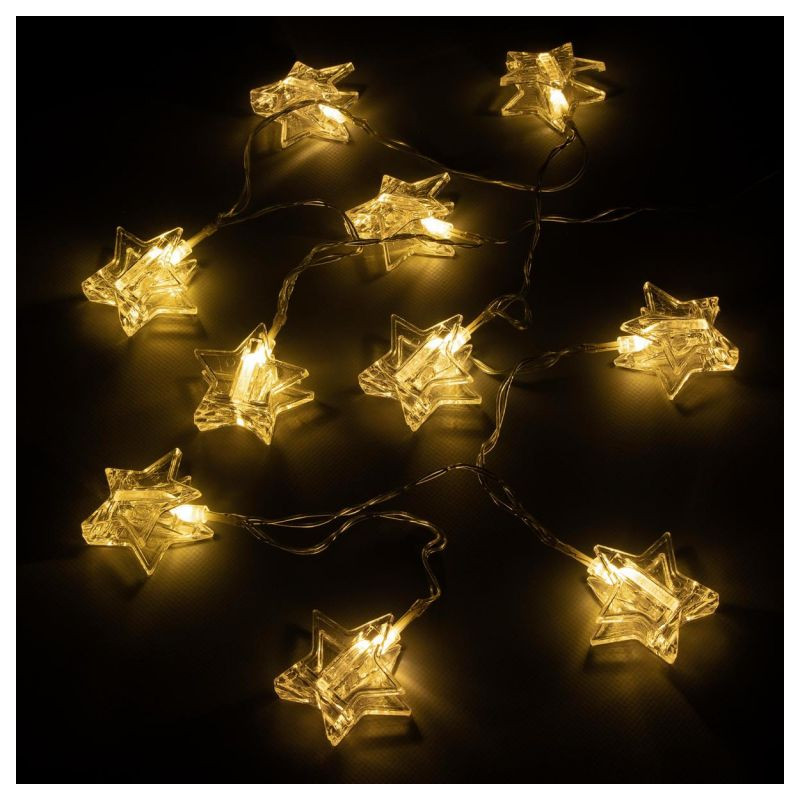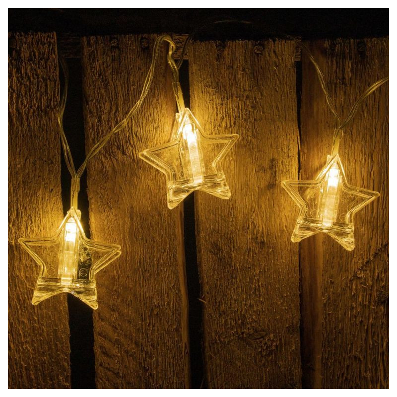 Toto osvětlení s průhlednými hvězdami je vhodné nejen jako vánoční dekorace, také ho můžete využít na různé oslavy a slavnostní události. Nastavte si své vlastní světelné akcenty po celý rok a vyzdobte si dům, zimní zahradu nebo společenskou místnost. Možnosti využití nejsou nijak omezeny. Určitě oceníte také praktický klip, který umožňuje individuální připevnění hvězd. Díky napájení na baterie jste nezávislí na zásuvkách a světelný řetěz můžete umístit kamkoliv v místnosti. Tento působivý světelný řetěz se skládá z 10ti teplých bílých LED diod, které vytvářejí jedinečnou atmosféru.