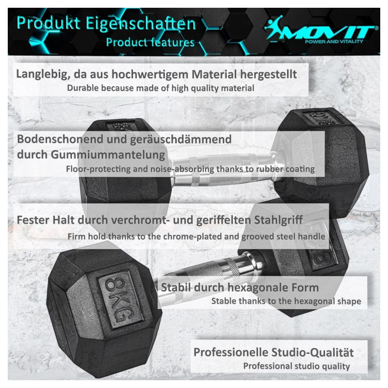 MOVIT® Šestihranná gumová činka 4 kg sada 2 kusů