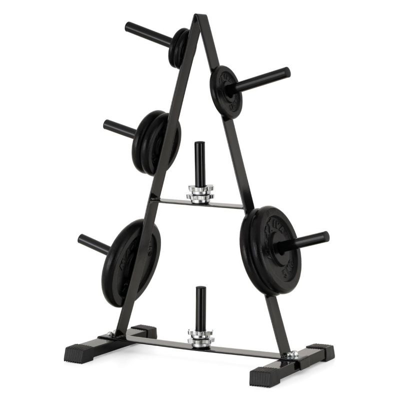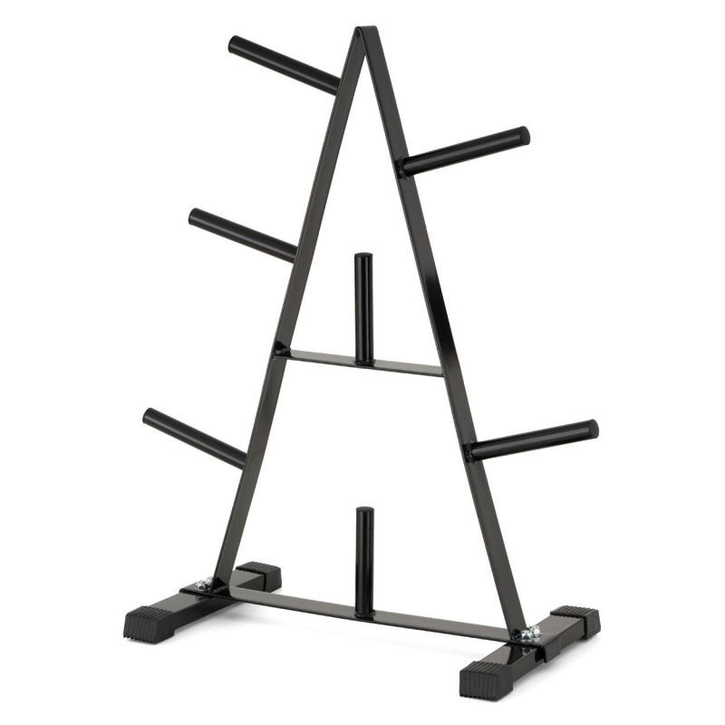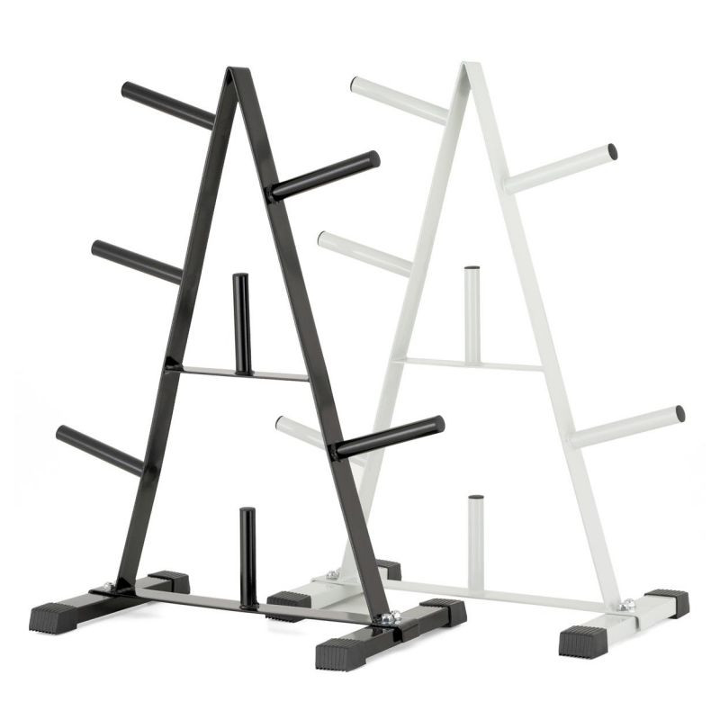 Praktický stojan na činky v atraktivním designu je vhodný pro uložení činkových tyčí, příslušenství a zátěžových desek - 7 držáků na desky pro závaží s průměrem otvorů 30/31 mm nabízí dostatek místa pro vaše vybavení. Stojan má kvalitní ocel - je vyroben z vysoce kvalitní trubkové oceli v neutrální bílé barvě. Pogumované nožičky zajišťují dobré odpružení a stabilizaci.