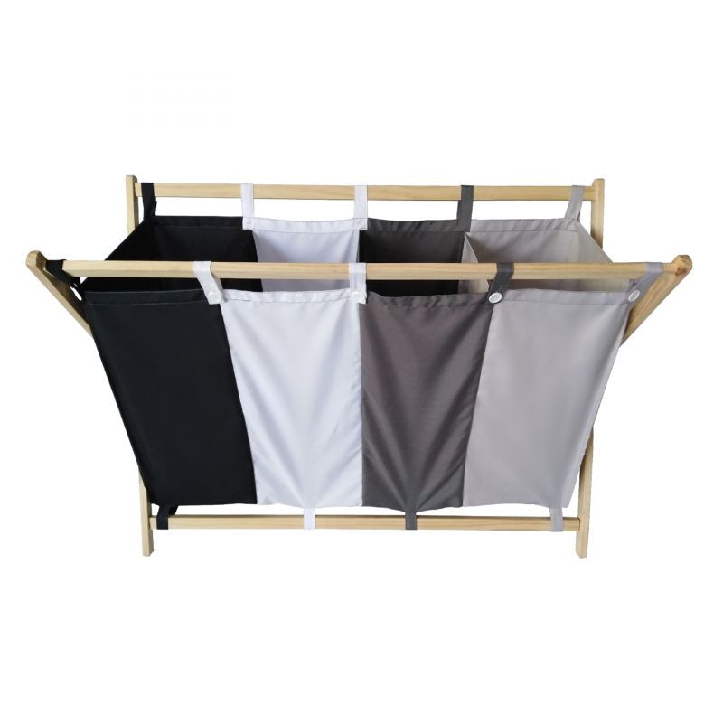 Konečně tak můžete vnést pořádek do koupelny nebo prádelny. Pytle na prádlo jsou vyrobeny z vysoce kvalitního a odolného polyesteru a jednoduše se zavěšují na pevný dřevěný rám. Velmi praktický pomocník, který vám usnadní praní prádla. Má 4 praktické sáčky na prádlo ve 4 barvách.