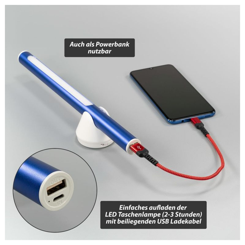 Tato dobíjecí multifunkční svítilna se hodí ve spoustě situací ať už při kempování, na zahradním stole, na balkoně, jako svítilna v autě pro případ nouze nebo jako pracovní lampa. Svítilna má mnoho praktických funkcí. Můžete si vybrat mezi barevnými odstíny. Součástí dodávky je vodotěsný průhledný kryt a magnetický plastový závěs s háčkem. Lze jej použít také jako stojan pro lampu. Lampu lze použít i v interiéru, jako nepřímé osvětlení na chodbě nebo v obývacím pokoji, nebo jako stolní lampu, lampu na čtení či lampu do dílny. Pomocí přiloženého nabíjecího kabelu USB můžete multifunkční lampu snadno a rychle nabít (cca 2-3 hodiny) nebo ji použít jako baterii pro jiná zařízení.