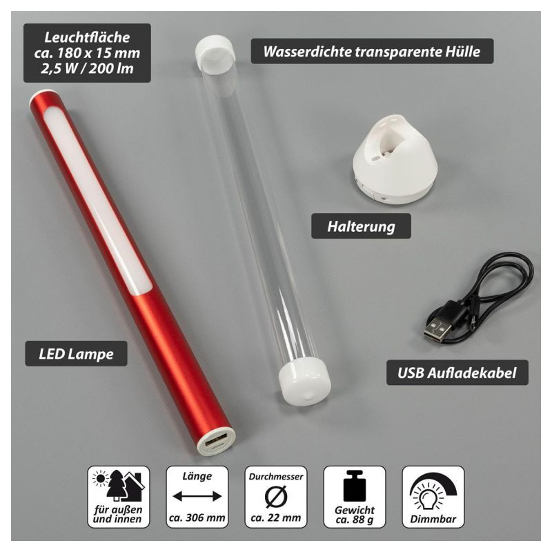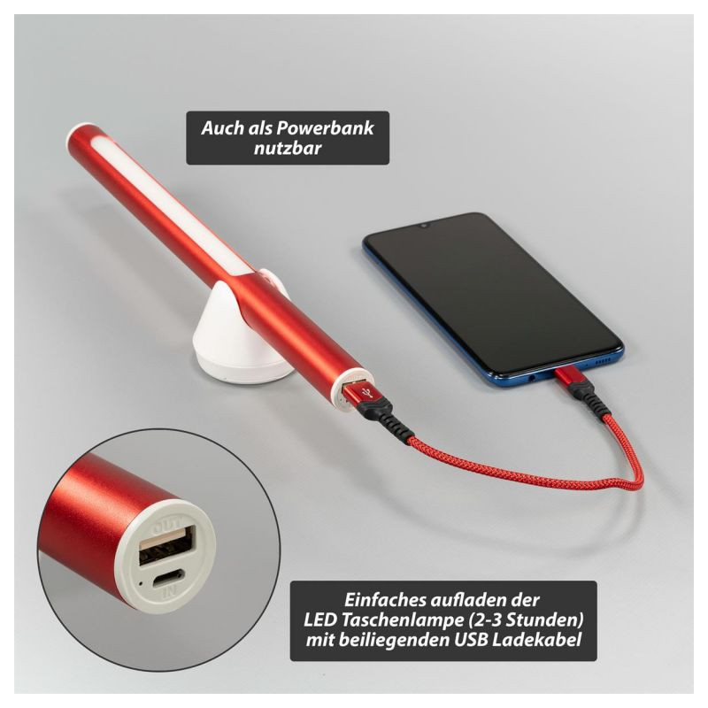 Tato dobíjecí multifunkční svítilna se hodí ve spoustě situací ať už při kempování, na zahradním stole, na balkoně, jako svítilna v autě pro případ nouze nebo jako pracovní lampa. Svítilna má mnoho praktických funkcí. Můžete si vybrat mezi barevnými odstíny. Součástí dodávky je vodotěsný průhledný kryt a magnetický plastový závěs s háčkem. Lze jej použít také jako stojan pro lampu. Lampu lze použít i v interiéru, jako nepřímé osvětlení na chodbě nebo v obývacím pokoji, nebo jako stolní lampu, lampu na čtení či lampu do dílny. Pomocí přiloženého nabíjecího kabelu USB můžete multifunkční lampu snadno a rychle nabít (cca 2-3 hodiny) nebo ji použít jako baterii pro jiná zařízení.