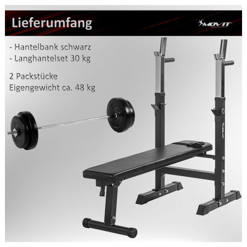 Pětipolohová nastavitelná lavice na posilování s integrovanými držáky. Díky sklopným nohám lze posilovací lavici použít také jako šikmou lavici, včetně popruhu na nohy. Lavici můžete v případě potřeby složit a uložit, díky svým rozměrům nezabere příliš místa. Již nemusíte řešit vybavení posilovny, s tímto setem můžete rovnou začít cvičit.