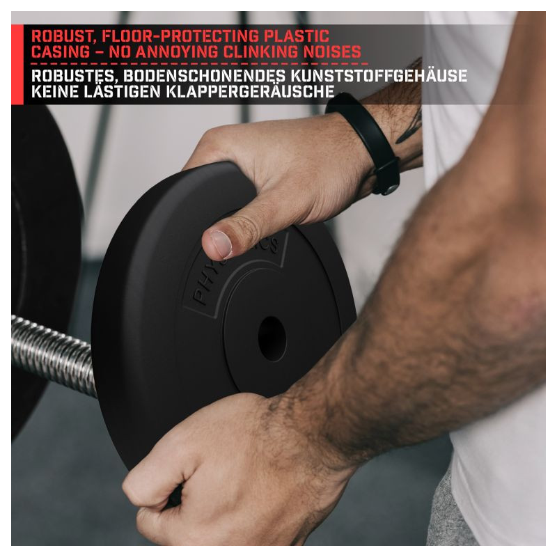 Cvičení doma vám dává svobodu cvičit kdy chcete a jak chcete. S touto sadou 2 ks závaží můžete trénovat tak dlouho, až dosáhnete svých vlastních fitness cílů. Kotouče jsou opatřeny plastovým povrchem, který je šetrný k podlaze. Průměr otvoru v zátěžových deskách je 31 mm. Činky mají robustní plastový plášť, díky kterému jsou tiché. Ušetřena bude i vaše podlaha.