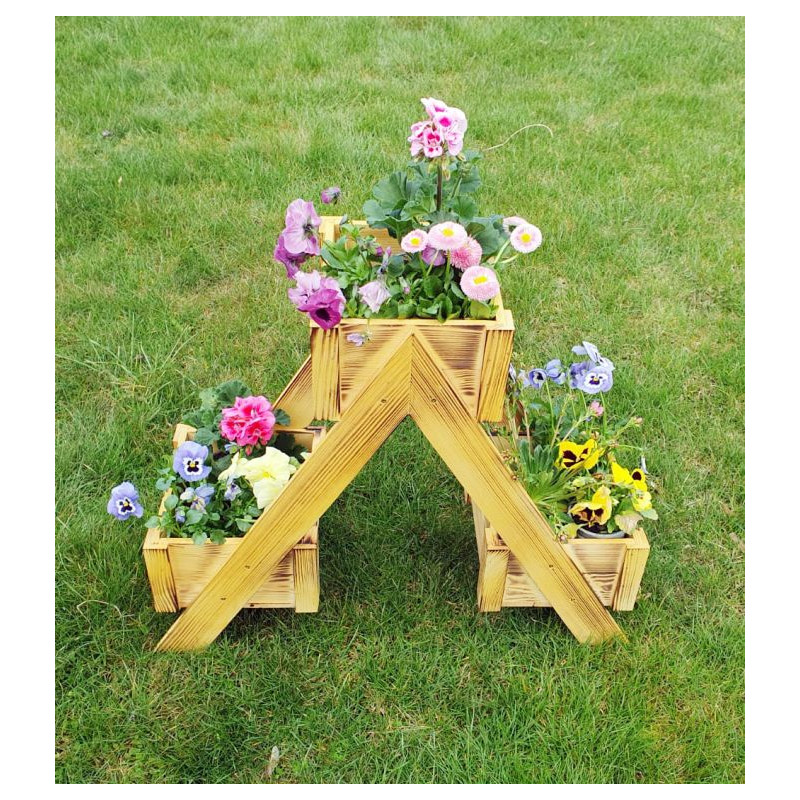 Dřevěný květináč vyrobený ze smrkového nebo borového dřeva včetně povrchové úpravy olejovou lazurou s jemným opálením. Dodáván je smontovaný,takže nepotřebujete žádné nářadí. Dřevo je přírodní materiál, který může praskat a pracovat, tomu nelze zabránit. Výrobek není určen na venkovní použití v zimním období, výrazně se tím zkracuje životnost.