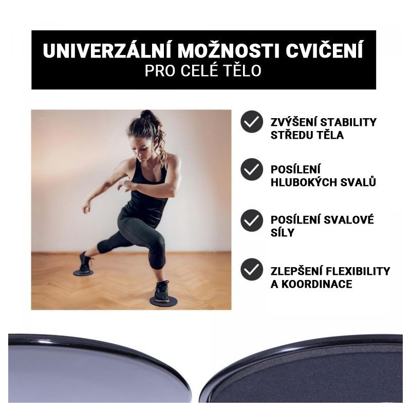 Cvičení s kluznými disky může být obzvláště náročné a efektivní. Je tedy nejvyšší čas začlenit toto speciální vybavení do vaší každodenní domácí posilovny, že? Neměli byste se nechat zmást do značné míry jednoduchým vzhledem disků. Díky tomu, že se soustředíte na pohyby co nejpomalejší, zapojují se i vaše hluboké svaly. Disky mají dvě různé strany. Jedna strana je hladká, druhá strana texturovaná. Jsou vhodné pro několik typů podlahových krytin.