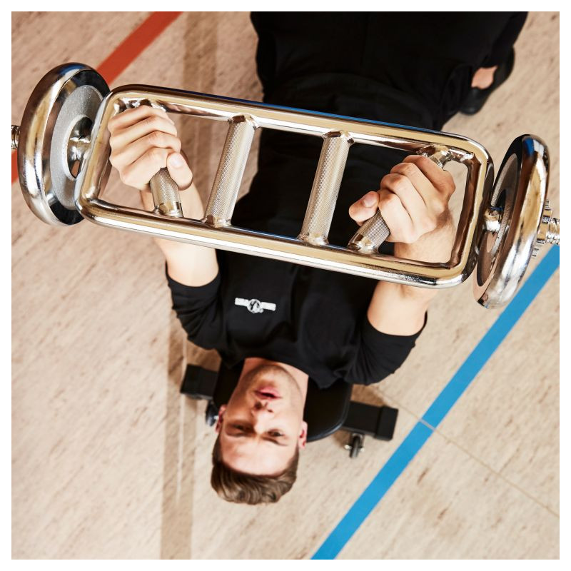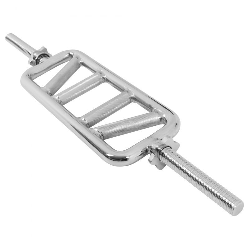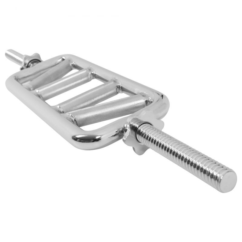 Tricepsový trenažér Diagonal v chromu od Gorilla Sports procvičuje nejen triceps, ale i biceps. Jeho šikmé rukojeti umožňují dvě varianty úchopu, se kterými můžete svaly nadloktí různě zatěžovat. S chromovaným trenažérem na triceps Diagonal od Gorilla Sports si můžete rozšířit domácí posilovnu o doplňky studiové kvality, které využijete k efektivnímu posilování horních paží. Je povrchově upravena vysoce kvalitním chromováním s rýhovanou rukojetí a označením.