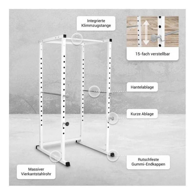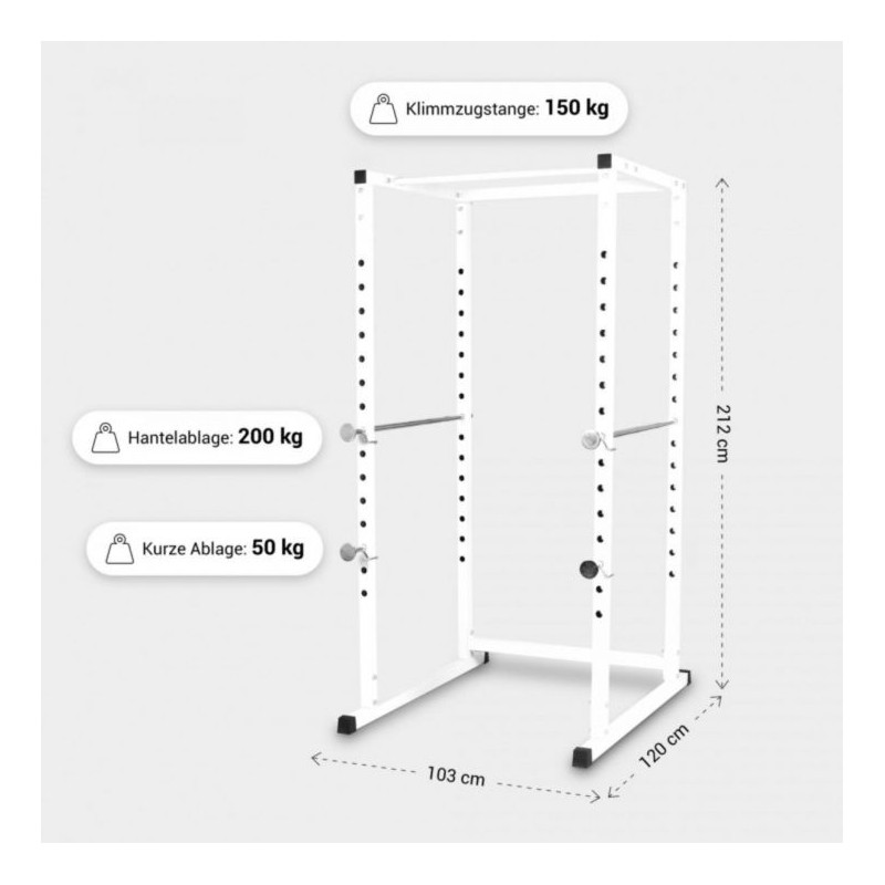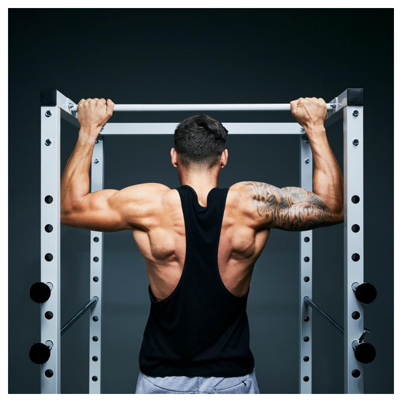 Klec v bílé barvě od společnosti Gorilla Sports nabízí ideální řešení. Pokud svaly selžou, nastavitelné kovové vzpěry zachytí činku. Takto můžete bezpečně trénovat například dřepy s činkou na ramenou nebo tlaky na ramena. Rám klece je vyroben z pevných čtyřhranných ocelových trubek a stojany na činky jsou nastavitelné v 15 směrech. Kliky jsou jedním z nejúčinnějších cviků s mrtvou vahou pro zádové svaly, a proto jsou ideálním doplňkem tréninku s činkami.