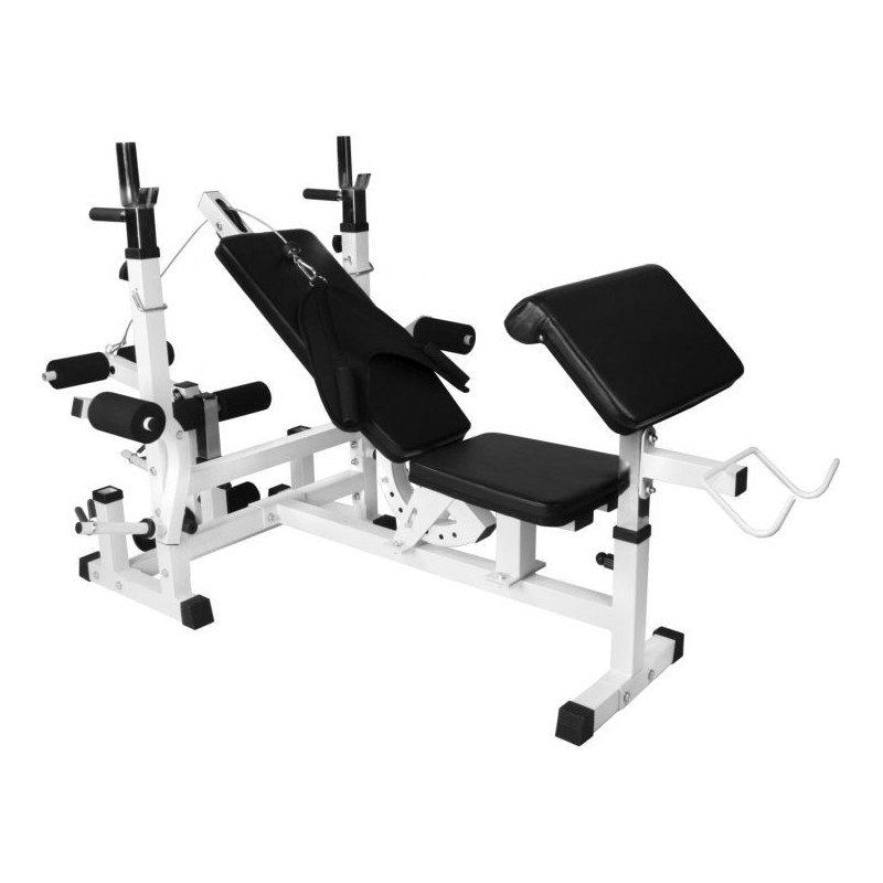 S touto kompletní sadou se Váš domov může rychle proměnit ve vlastní posilovnu. Pro ochranu podlahy před poškrábáním je součástí černá ochranná rohož. Posilovací lavice, curlingová lavice se stojanem, motýlí paže, kabelový modul, nastavitelný stojan na činky s integrovanými madly, lat stahovací věž a nastavitelné opěradlo, s tím vším můžete procvičit celé tělo. Součástí je samozřejmě také sada závaží, která obsahuje 1 činku, 1 SZ curl tyč a 2 činky s plastovými zátěžovými kotouči o celkové hmotnosti 100 kg.