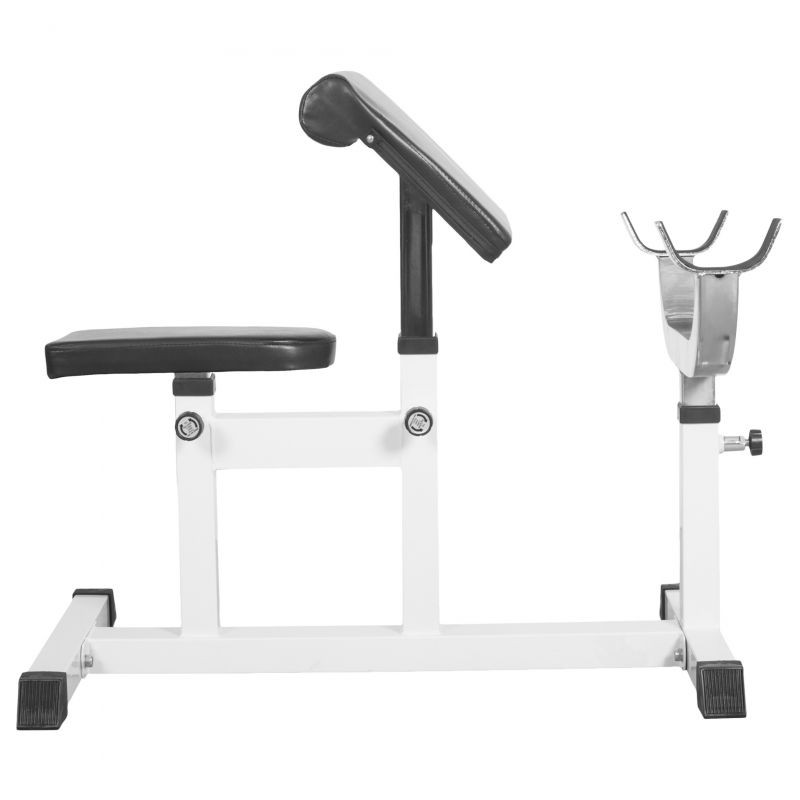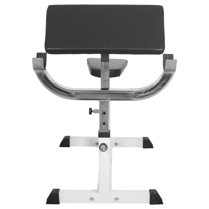 Cvičení na této posilovací lavici se provádí pomocí obouruční činky, zpravidla s těžším závažím. Je třeba se však vyvarovat několika častých chyb: naklánění či zvedání trupu při cvičení, nesprávný rozsah pohybu a příliš vysoká hmotnost kotoučů. Lavice stojí stabilně na protiskluzových nohách a přesvědčí nekomplikovanou manipulací díky rychlému nastavení zajišťovacího čepu. Sedadlo, opěrka a držadlo na činky jsou nastavitelné v pěti směrech a polstrovaná opěrka rukou zmírňuje namáhání loktů a zad během tréninku.