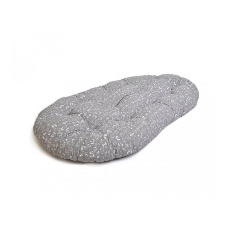Oválná polštář je ručně ušit ze 100% bavlny a vyplněn drceným molitanem. Díky výplni je tento polštář bytelný a vhodný tak pro velká plemena psů (např. retríver, australský ovčák, německý ovčák atd.). Aby nedošlo k nerovnoměrnému rozmístění výplně, je polštář v několika bodech prošitý. Potah nelze sejmout.