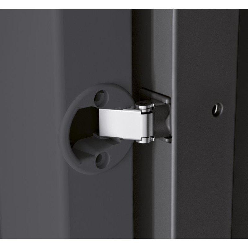 Skříně poskytují více než základní vybavení: posunovatelné police díky systému SLO, nosnost polic až 45kg, zesílené spodní dno se středovou nohou navíc, uzamykatelnost na visací zámek a optimální rukojeti.