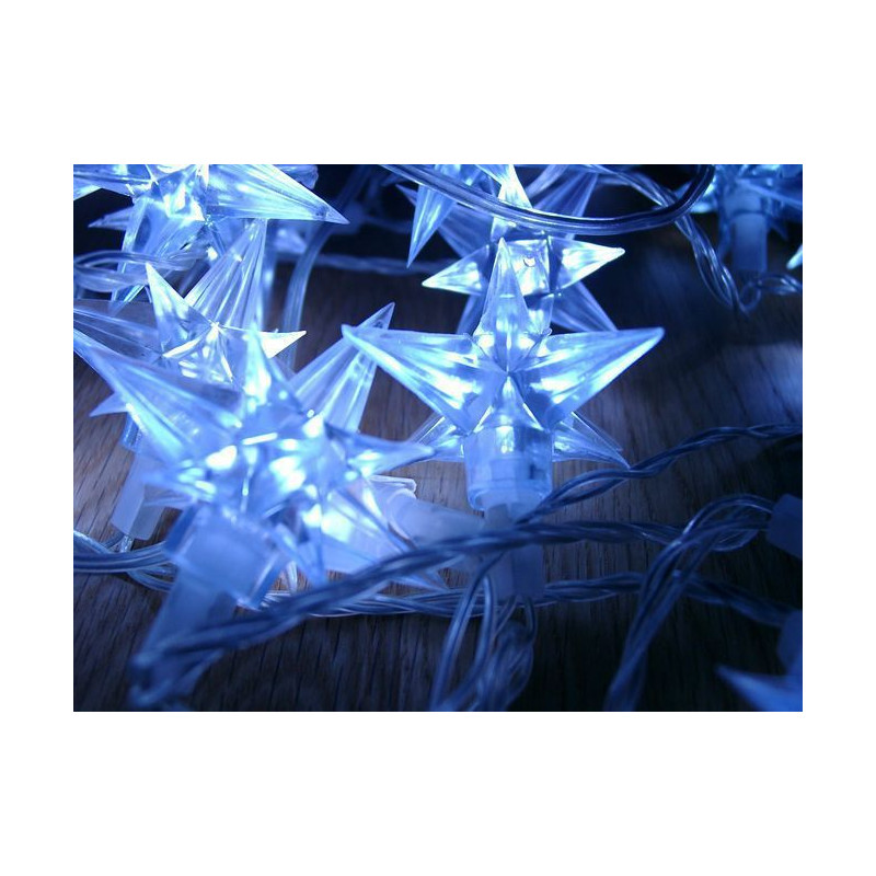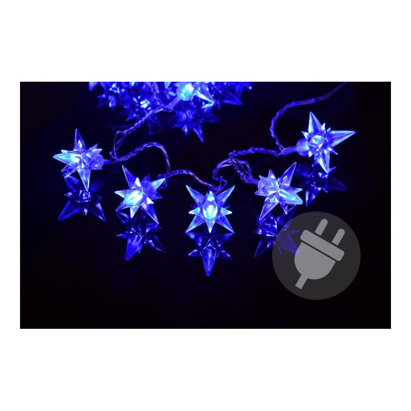 Modře svítící hvězdy báječně podtrhnou slavnostní a romantickou atmosféru o vánočních svátcích. Osvětlení je vhodné pro vnitřní i venkovní použití. Délka světelné části je dlouhá 4m. S tímto LED světelným řetězem ušetříte až 80 % energie oproti běžným žárovkám.