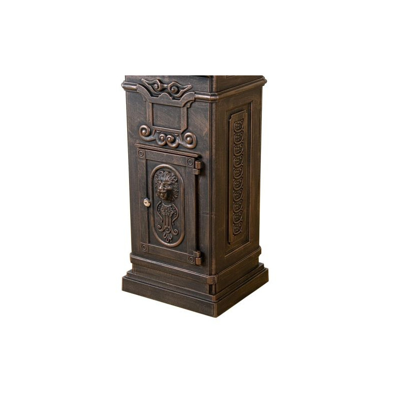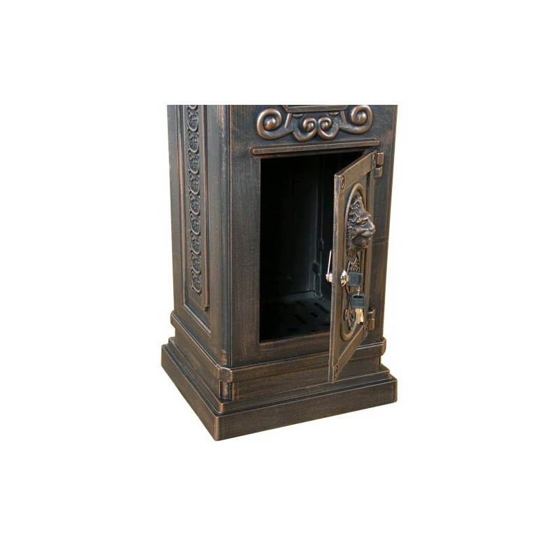 Tato krásná poštovní schránka, která má design sloupu, na sebe upoutá všechny pohledy. Schránka je vyrobena v antickém stylu a má barvu starožitné mosazi. Je vysoce stabilní a odolná proti povětrnostním vlivům. Štěrbina na vhoz dopisů je velká 26 x 3 cm, a tak se do ní bez problémů vejdou i větší zásilky. Vhoz je vybaven krytím, takže vaše dopisy budou spolehlivě chráněny před vlivy počasí. Chcete-li praktický a zároveň neokoukaný doplněk k vašemu domu, pak je tato schránka to pravé.