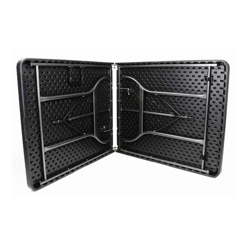 Černá sklopná sestava v elegantním designu upoutá Vaši pozornost. Stůl a lavice jsou obratem ruky postavené. Díky integrovanému držáku můžete sestavu donést sebou k jakékoliv party. Pokud sestavu zrovna nepotřebujete, jednoduše ji složíte a uskladníte. Materiál je nenáročný na údržbu a lehce omyvatelný. Tím je sestava vhodná jak pro vnitřní tak i venkovní prostory. Nohy jsou opatřeny gumovými záslepkami. Nic nestojí Vašim oslavám v cestě.