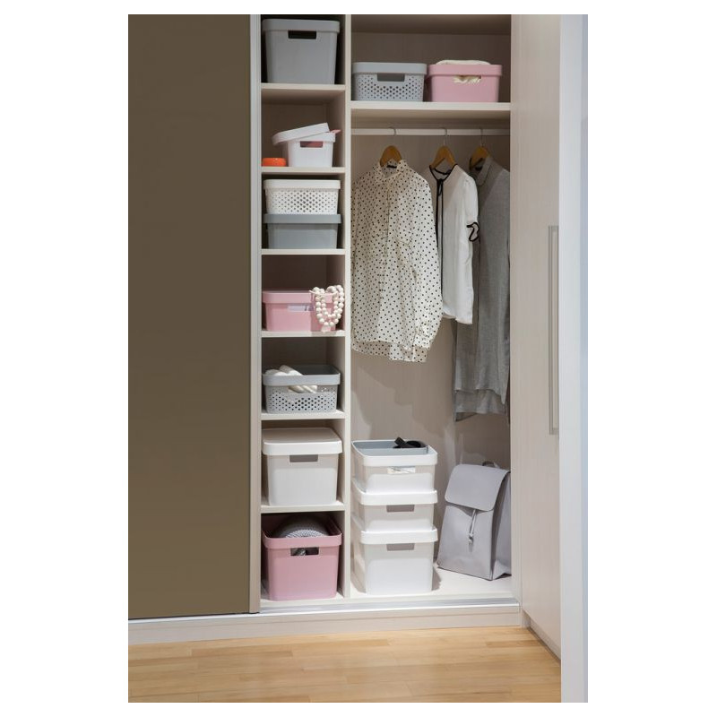 Úložný plastový box s víkem z řady INFINITY DOTS o objemu 17L. Řada INFINITY DOTS vyniká svým moderním,nápaditýmdesignem v podobě děrování-inspirovaný skandinávským stylem. Infinity box je nejen praktický, ale hlavně moderní doplněk interiéru. Osvědčí se jak v koupelně, šatně, tak i v kuchyni. Kvalitní a odolný plast - kvalita značky Curver. K dostání ve čtyřech barevných provedeních- šedá, bílá, růžová, modrá.