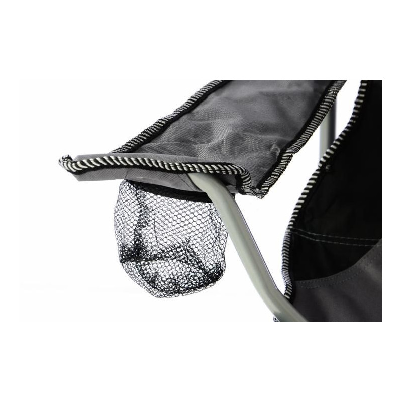 V loketní opěrce je integrován praktický držák nápojů, do kterého můžete samozřejmě umístit telefon nebo jiné drobnosti. Na zadní části je umístěna také síť pro uskladnění drobností. Loketní opěrky se dají zafixovat do potřebné výšky přezkou a sedák je navíc vybaven pásem k zesílení, který zabrání prověšení sedací plochy.